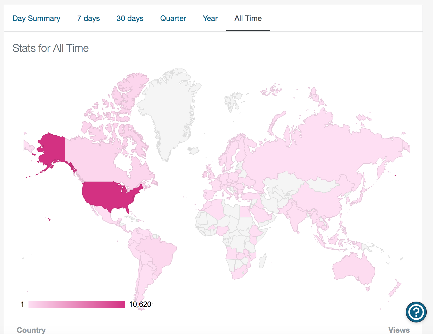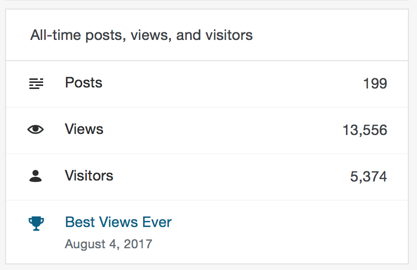WordPress doesn’t have a nice compilation of the yearly stats (that I’ve found) but they look something like this: