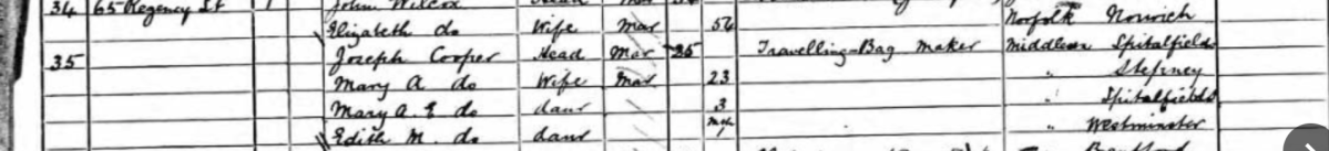 1891 Census–Joseph Cooper & Family Published January 20, 2020 at 1908 × 218 in Packing My Traveling Bag ← Previous Next → Share this: Share on X (Opens in new window) X Share on Facebook (Opens in new window) Facebook Email a link to a friend (Opens in new window) Email Like Loading...